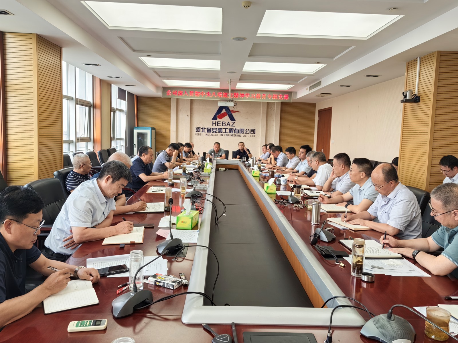 2025年9月3日,為紀(jì)念中國人民抗日戰(zhàn)爭(zhēng)暨世界反法西斯戰(zhàn)爭(zhēng)勝利80周年,河北省安裝工程有限公司積極組織職工集中觀看閱兵盛況直播。公司機(jī)關(guān)及各分公司、項(xiàng)目部共計(jì)2000余人通過多種方式同步參與,共同回顧歷史、緬懷先烈、展望未來。上午9時(shí),習(xí)近平總書記發(fā)表重要講話,9時(shí)19分大閱兵正式開始,公司機(jī)關(guān)及各分公司、項(xiàng)目部會(huì)議室座無虛席,職工們們整齊地坐在屏幕前,神情莊重地注視著電視畫面。在閱兵式過程中,